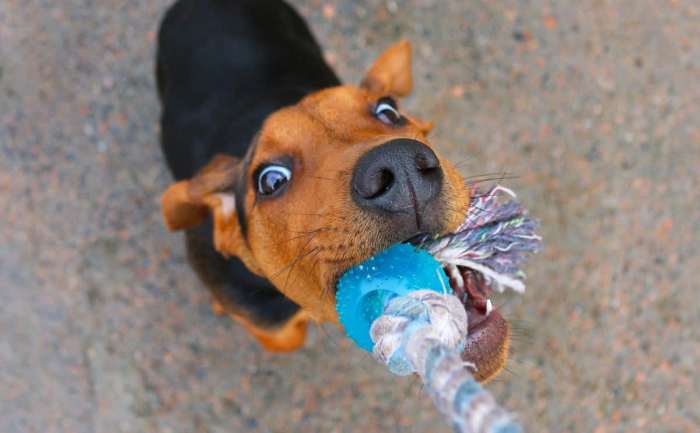 给你的狗狗一个专门的咀嚼玩具,不要看起来像家居用品。不要用旧鞋子或袜子。那样只会混淆信息。