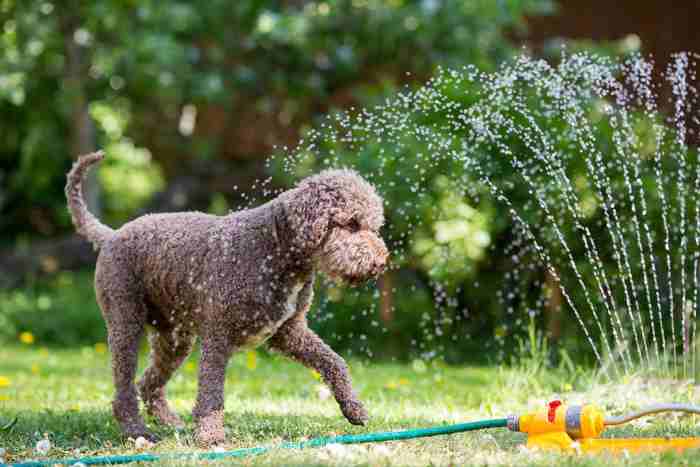 游泳和戏水是让狗狗保持凉爽的有趣方式。可以考虑使用儿童泳池或喷水器,或者直接用水管给宠物喷水。如果您有更大的泳池,请密切关注您的宠物,并使用狗狗专用救生衣以增加安全保障。在湖泊和池塘里游泳很有趣,但需要注意一些事项,因为有些水可能含有有害的寄生虫、细菌或藻类。