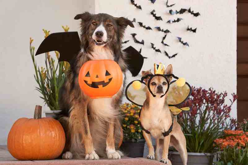 如果举办万圣节派对,请让你的狗狗远离庆祝活动。先让它们活动一下,这样它们就会感到疲惫并平静下来。如果它们想打招呼,请缩短它们的逗留时间并密切监督,并礼貌地请客人不要给它们零食。