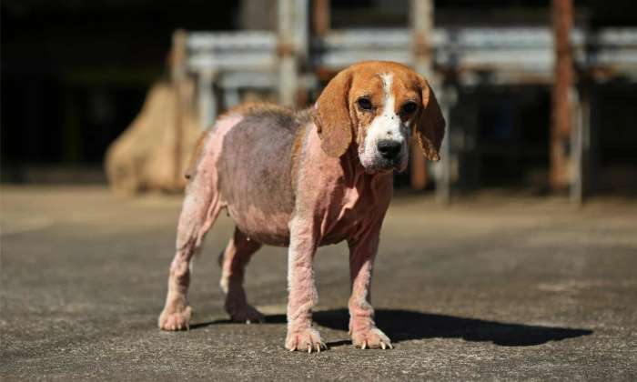 如果大面积皮肤受到影响,就会出现泛发性蠕形螨病,狗狗最终会失去大部分毛发。它们的皮肤会变得鳞屑状,发炎,并且看起来很硬。